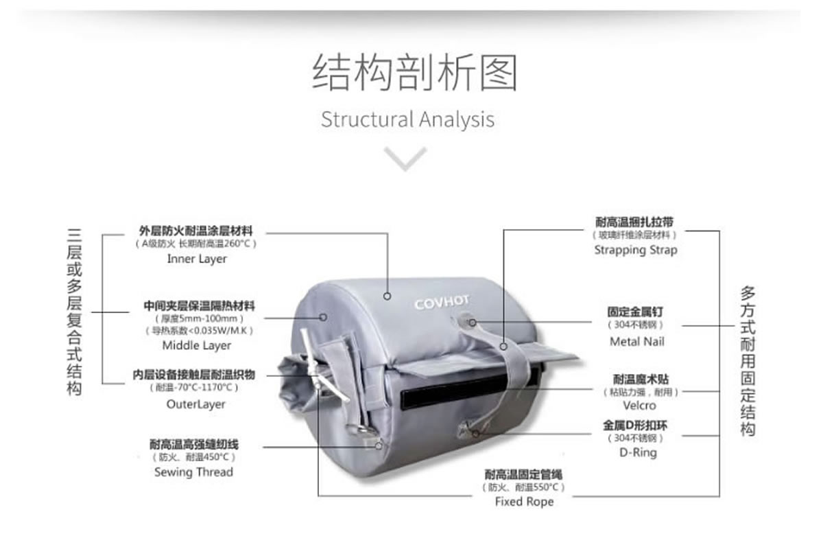 CovHot柔性可拆卸閥門保溫套根據(jù)閥門的具體形狀及其使用環(huán)境,經(jīng)過精心設(shè)計、測繪后,通過特別工藝制造而成??捎迷诓煌瑴囟?,不同形狀的閥門管道和各種冷熱設(shè)備的絕熱保溫。對于要常常拆卸、維修保養(yǎng)、清洗的管道閥門設(shè)備尤為實用。
